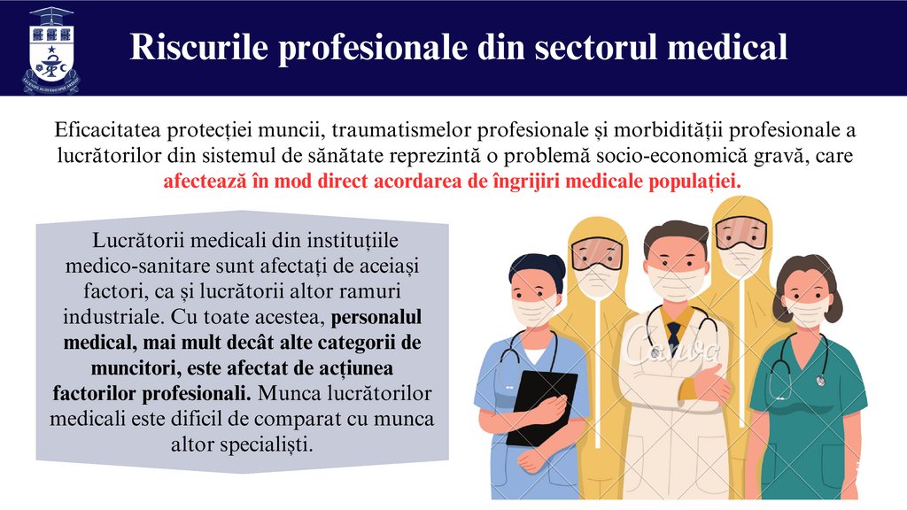 Riscurile profesionale din sectorul medicalEficacitatea protecției muncii, traumatismelor profesionale şi morbidității profesionale a