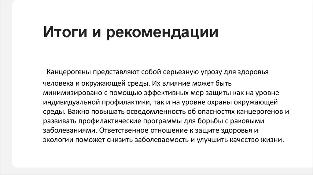 Итоги и рекомендацииКанцерогены представляют собой серьезную угрозу для здоровья