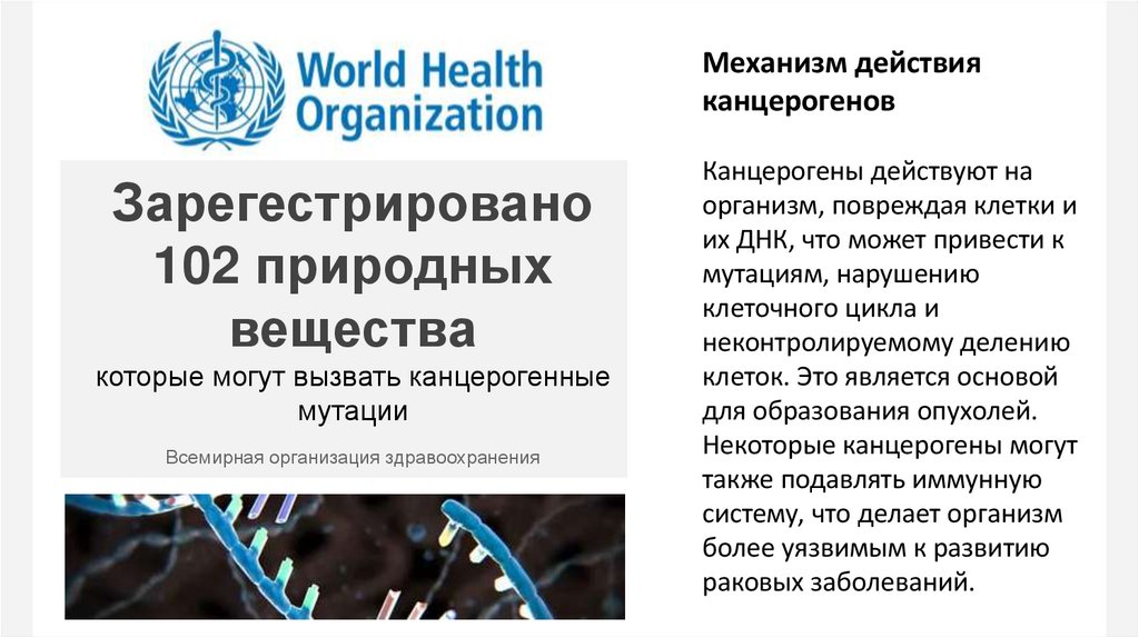 Влияние канцерогенов на здоровьеКанцерогены могут быть причиной