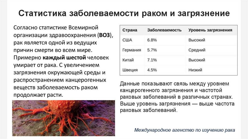 Статистика заболеваемости раком и загрязнениеСогласно статистике Всемирной