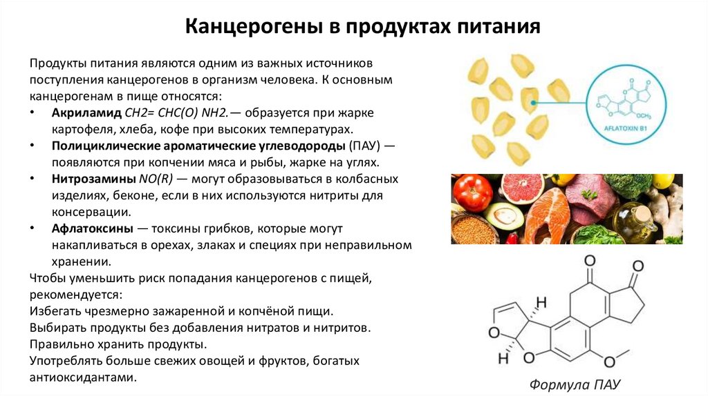 Канцерогены в продуктах питанияПродукты питания являются одним из важных источников