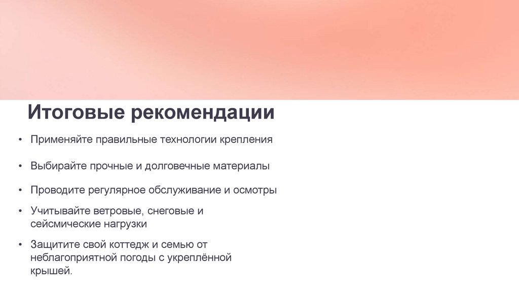 Итоговые рекомендации• Применяйте правильные технологии крепления