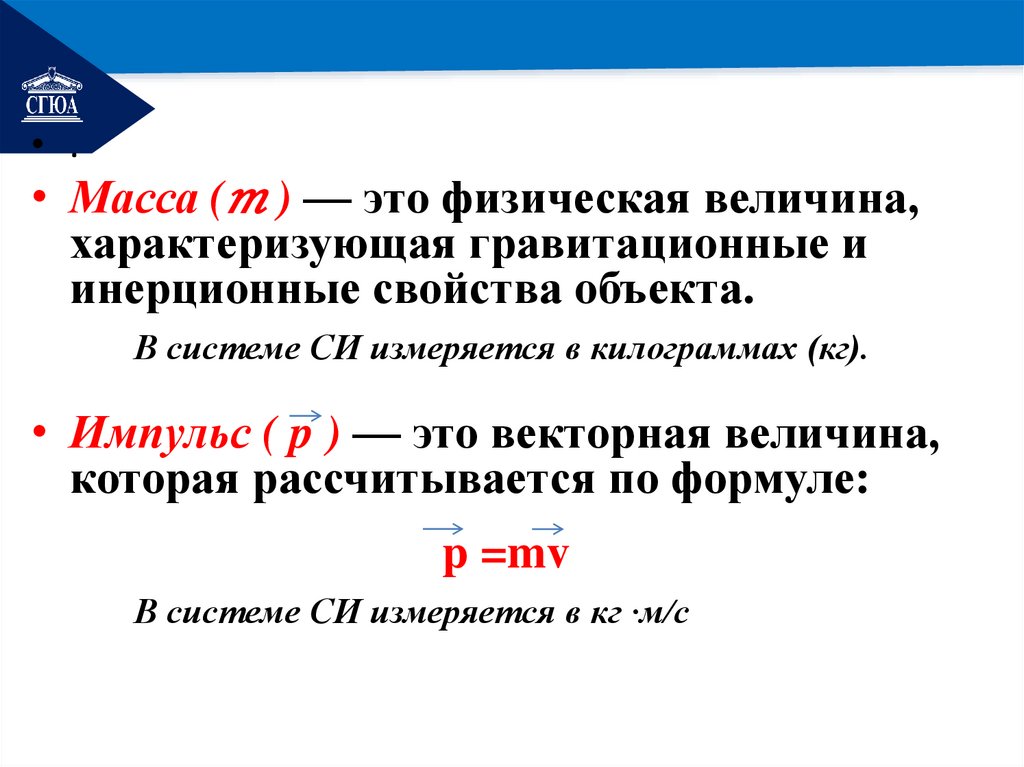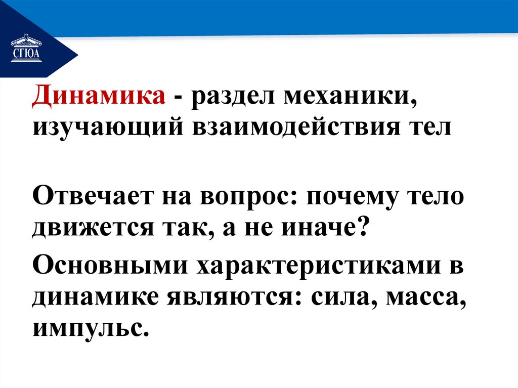 динамике являются: сила, масса,