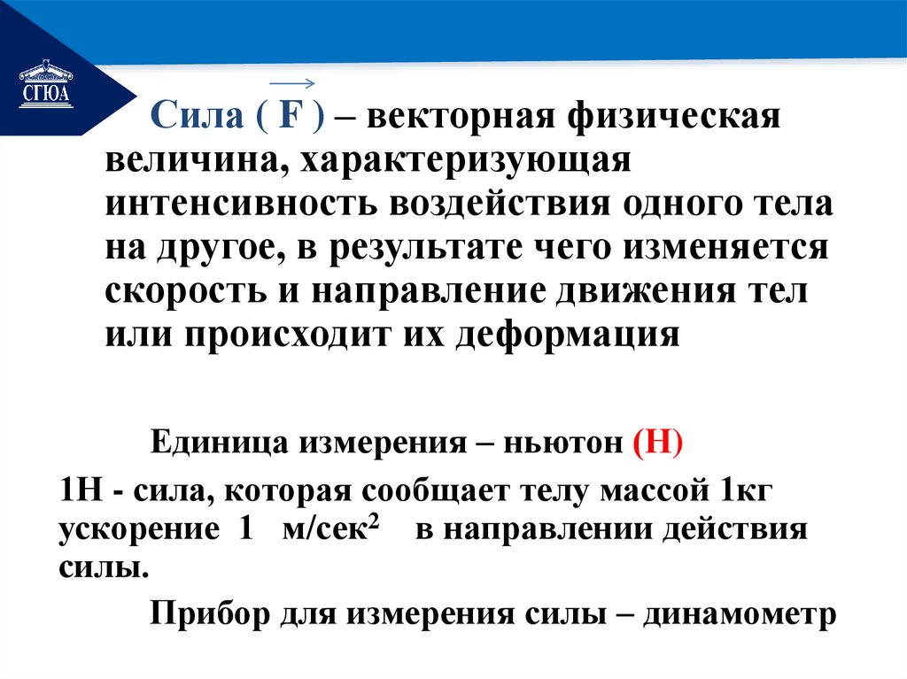 Единица измерения – ньютон (Н)