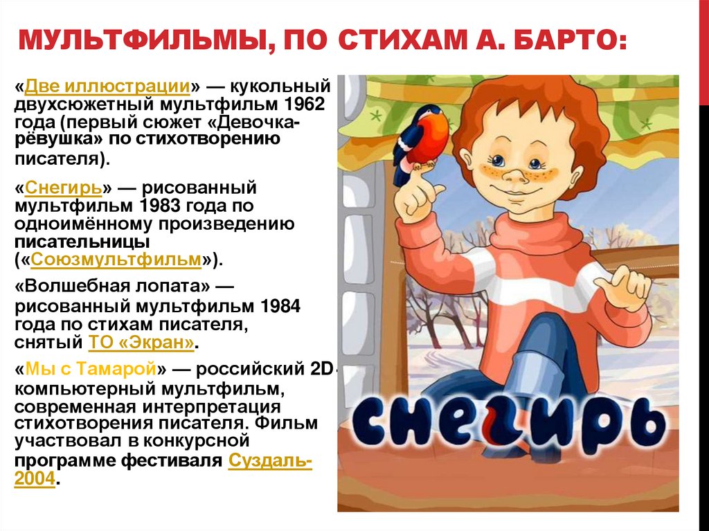 фильмы и мультфильмы по сценариям А.Л. Барто.