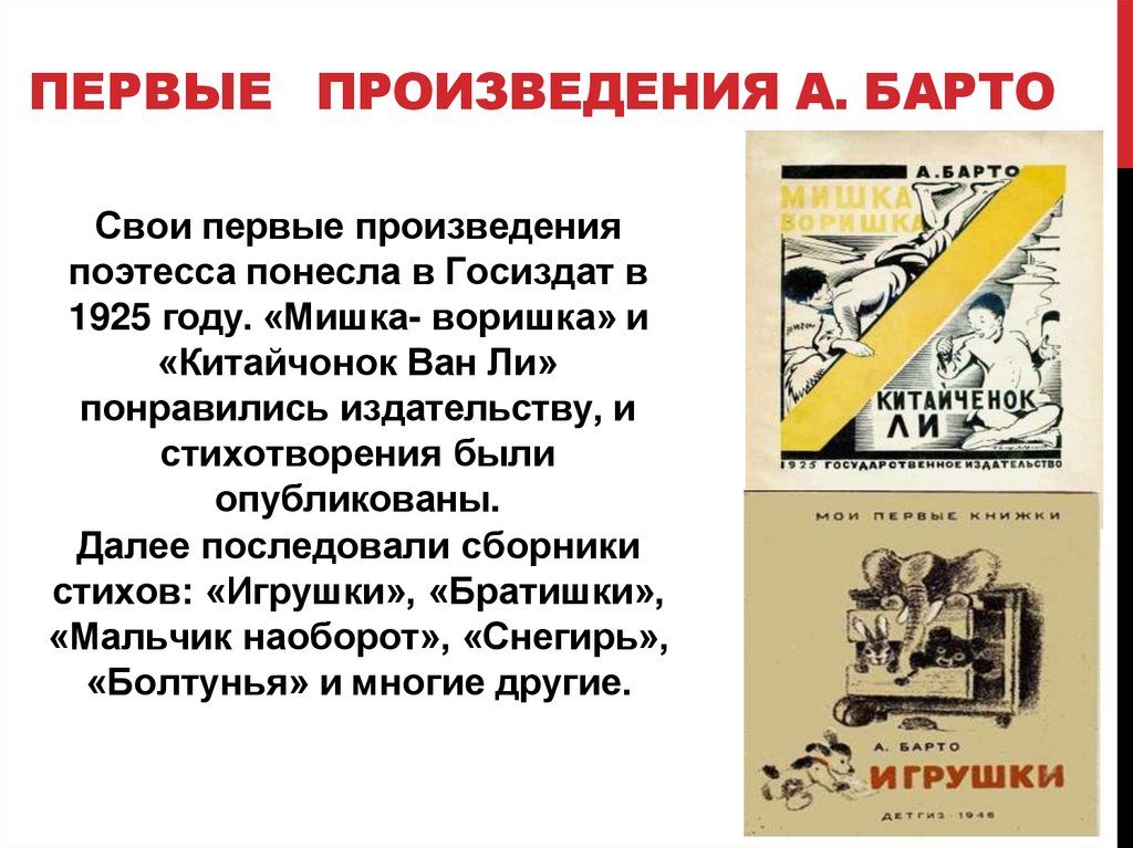 6. ПЕРВЫЕ ПРОИЗВЕДЕНИЯ А. БАРТО
