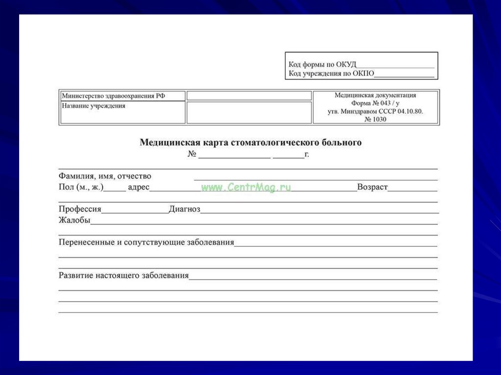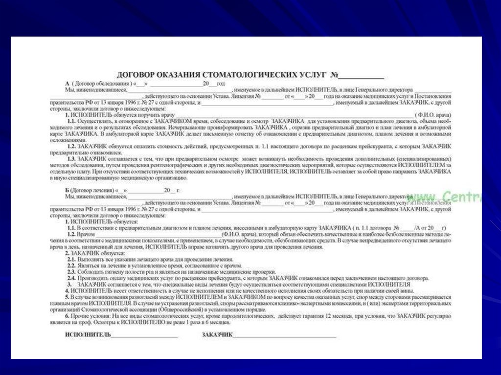Организация работы клиники ортопедическойстоматологии. Знакомство с работой и
