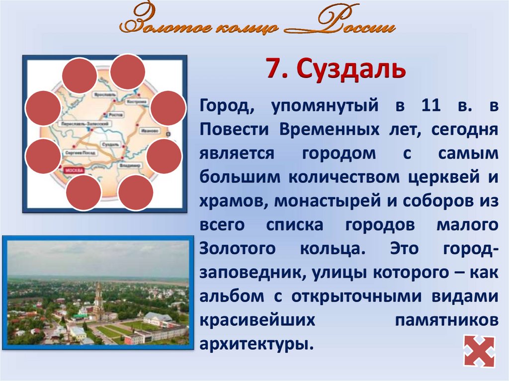 Золотого кольца. Это городзаповедник, улицы которого – как