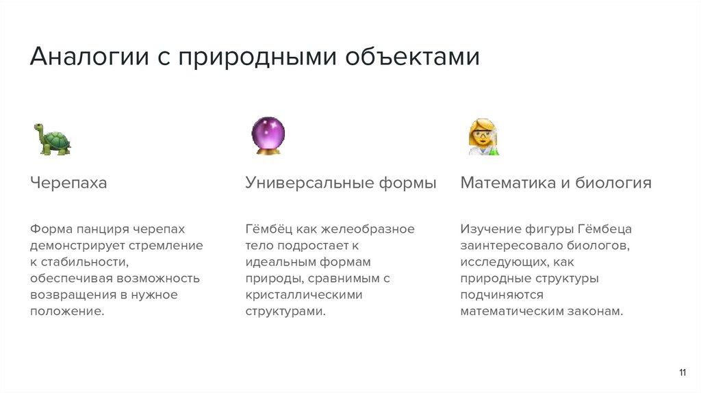 геометрические объекты, что влияет на биомимиетику и дизайн. Чувствительность Гёмбеца к