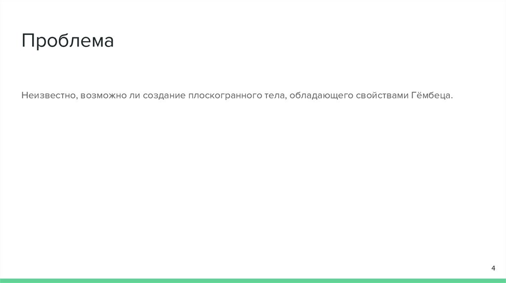 ПроблемаНеизвестно, возможно ли создание плоскогранного тела, обладающего свойствами Гёмбеца.