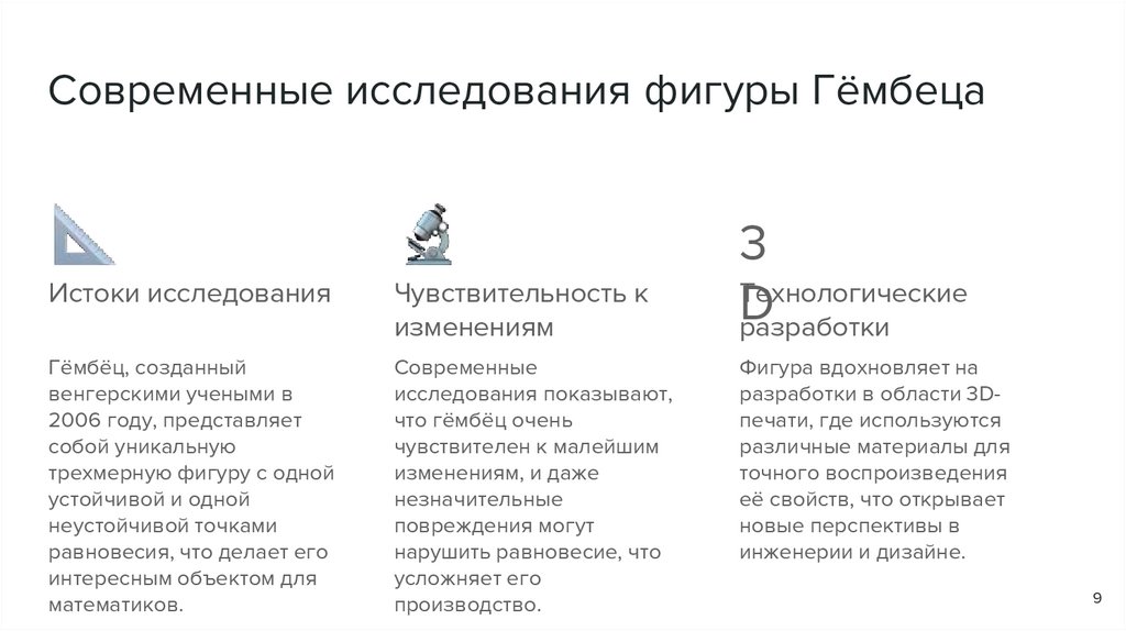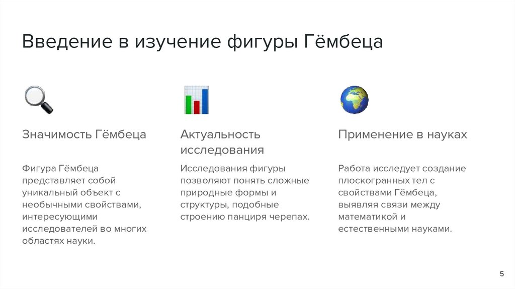 Задачи1. Исследовать геометрические свойства фигуры Гёмбеца. 2. Рассмотреть существующие научные