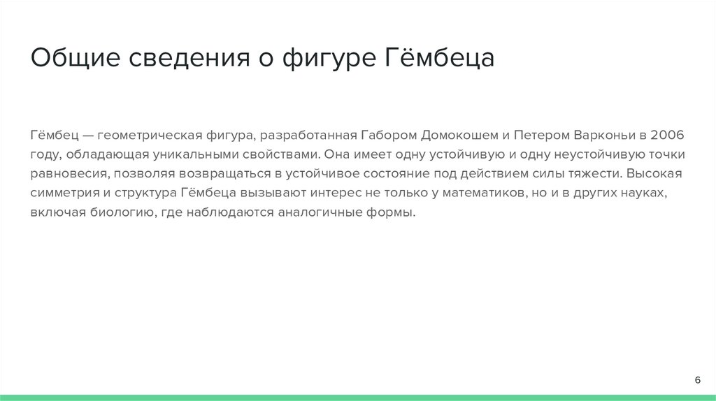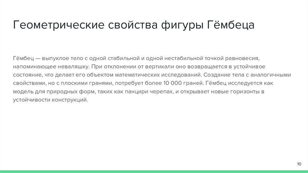 Геометрические свойства фигуры ГёмбецаГёмбец — выпуклое тело с одной стабильной и одной нестабильной точкой равновесия,
