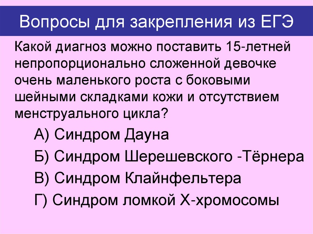 Вопросы для закрепления из ЕГЭКакой диагноз можно поставить 15-летней