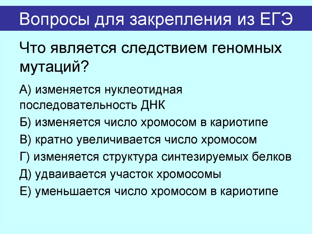 Вопросы для закрепления из ЕГЭЧто является следствием геномных