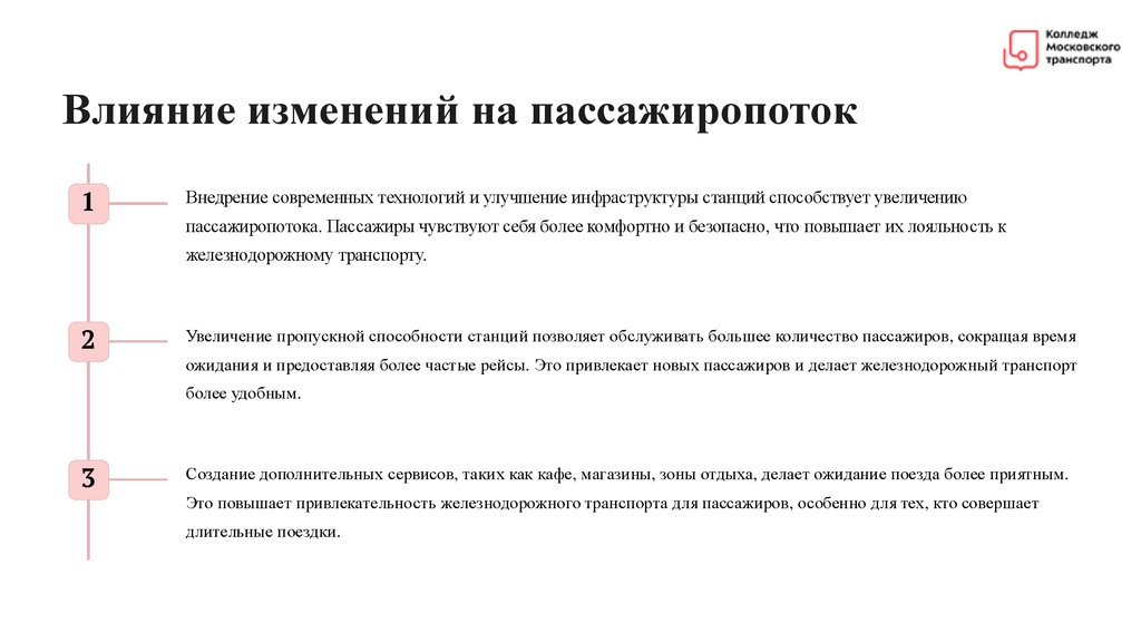 пассажиропотока. Пассажиры чувствуют себя более комфортно и безопасно, что повышает их лояльность к