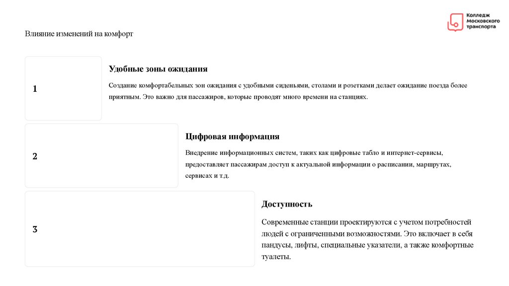 приятным. Это важно для пассажиров, которые проводят много времени на станциях.