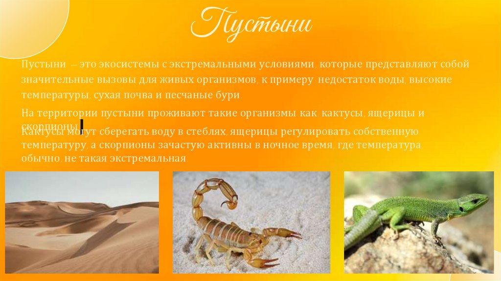 ПустыниПустыни — это экосистемы с экстремальными условиями, которые представляют собой