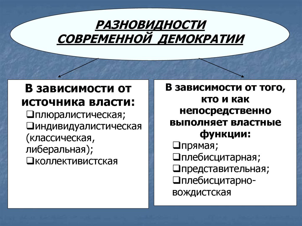 РАЗНОВИДНОСТИСОВРЕМЕННОЙ ДЕМОКРАТИИ