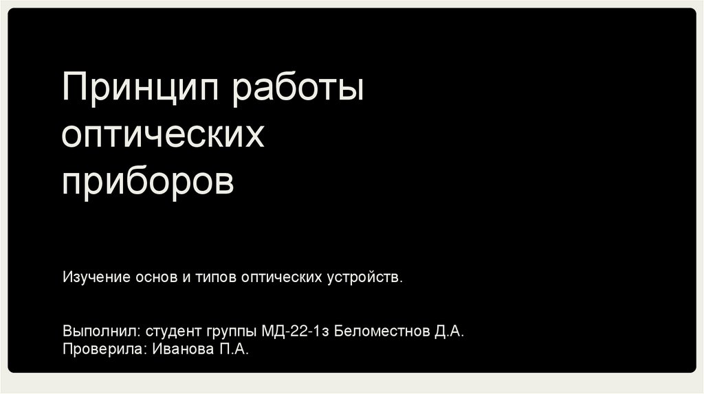 Изучение основ и типов оптических устройств.Выполнил: студент группы МД-22-1з Беломестнов Д.А.