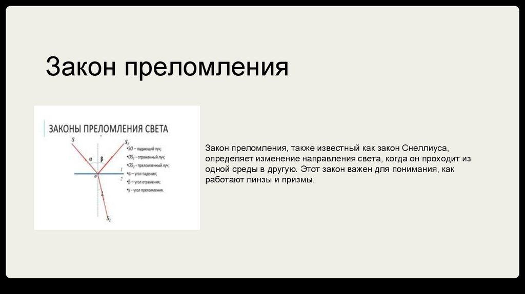 одной среды в другую. Этот закон важен для понимания, как