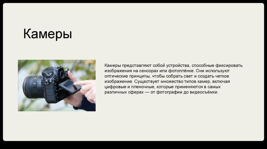 изображение. Существует множество типов камер, включая
