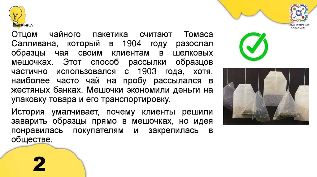 Отцом чайного пакетика считают ТомасаСалливана, который в 1904 году разослал