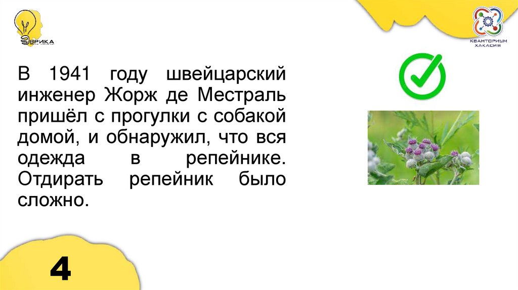 В 1941 году швейцарскийинженер Жорж де Местраль