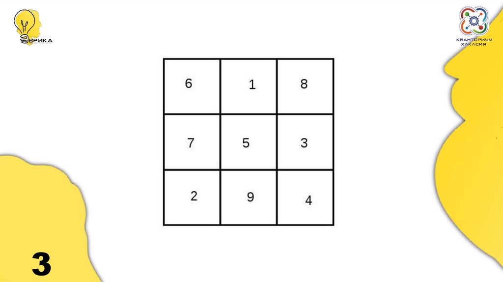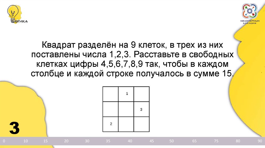 Квадрат разделён на 9 клеток, в трех из нихпоставлены числа 1,2,3. Расставьте в свободных