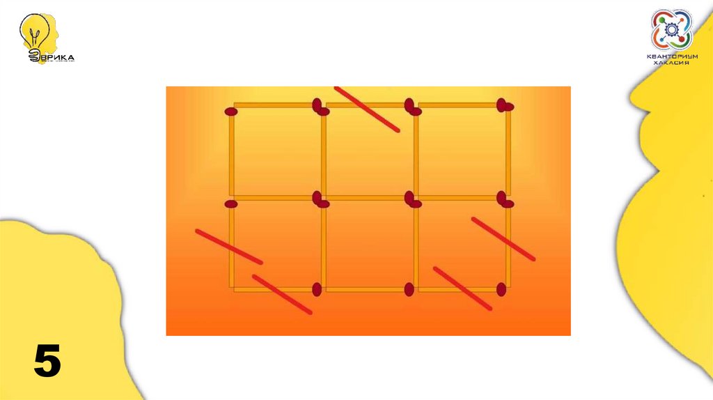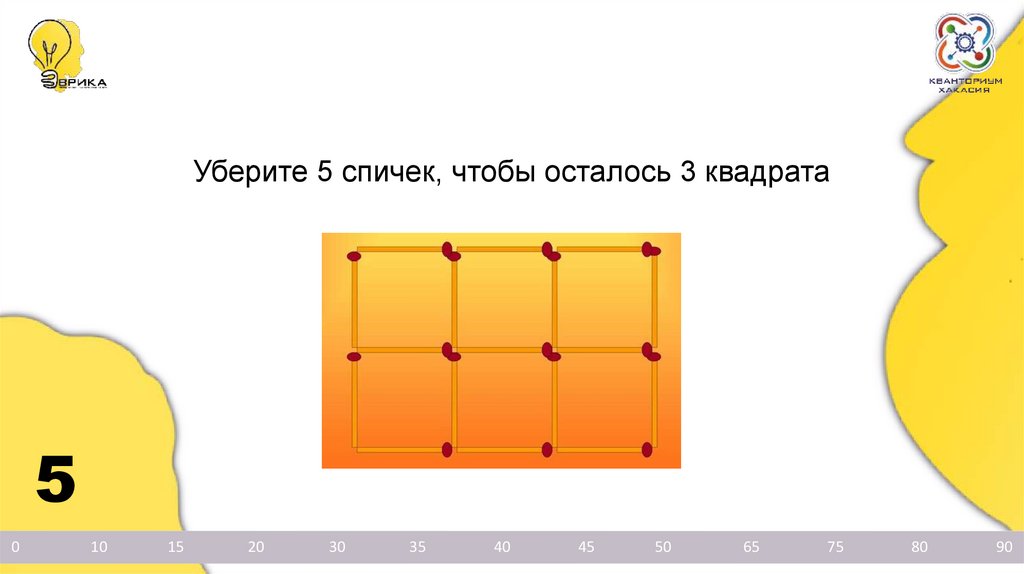 Уберите 5 спичек, чтобы осталось 3 квадрата5