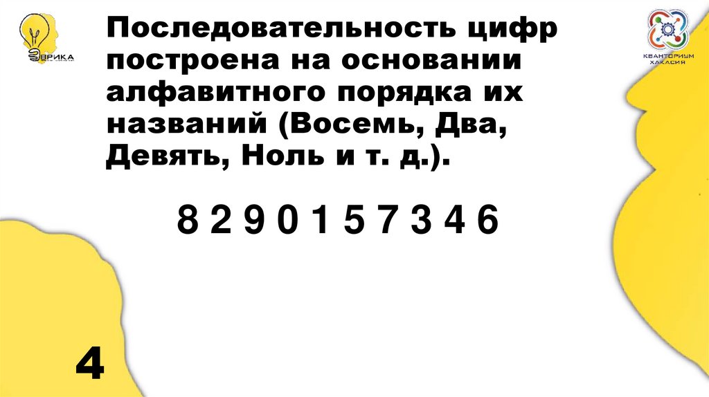 342. Последовательность цифр построена на основании алфавитного порядка их названий (Восемь, Два, Девять, Ноль и т. д.).
