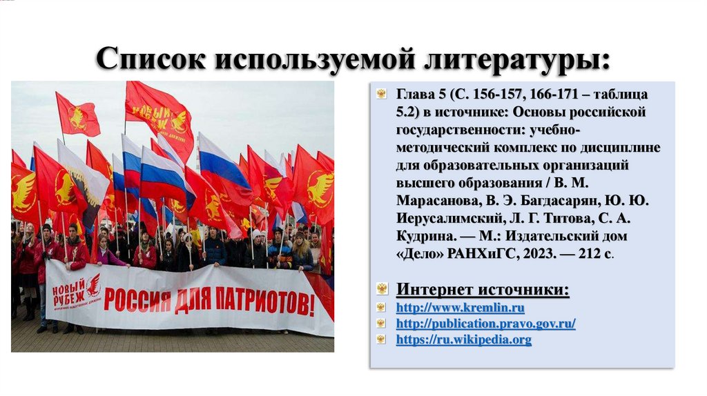 Глава 5 (С. 156-157, 166-171 – таблица5.2) в источнике: Основы российской