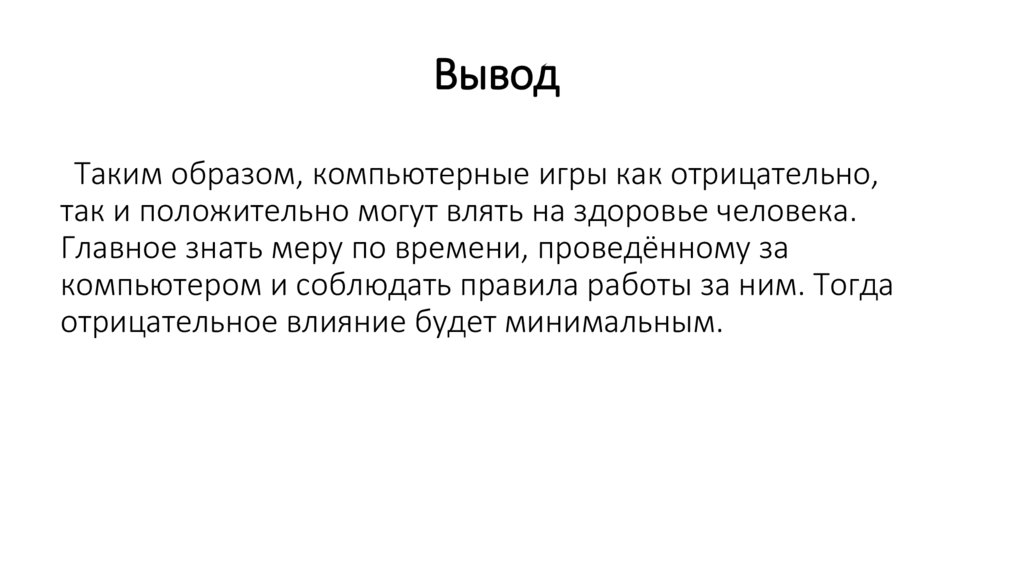 Цель: проанализировать положительное и отрицательное влияниеигр на человека и сделать выводы