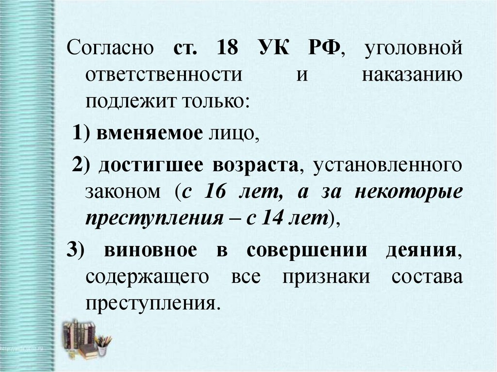 Согласно ст. 18 УК РФ, уголовнойответственности