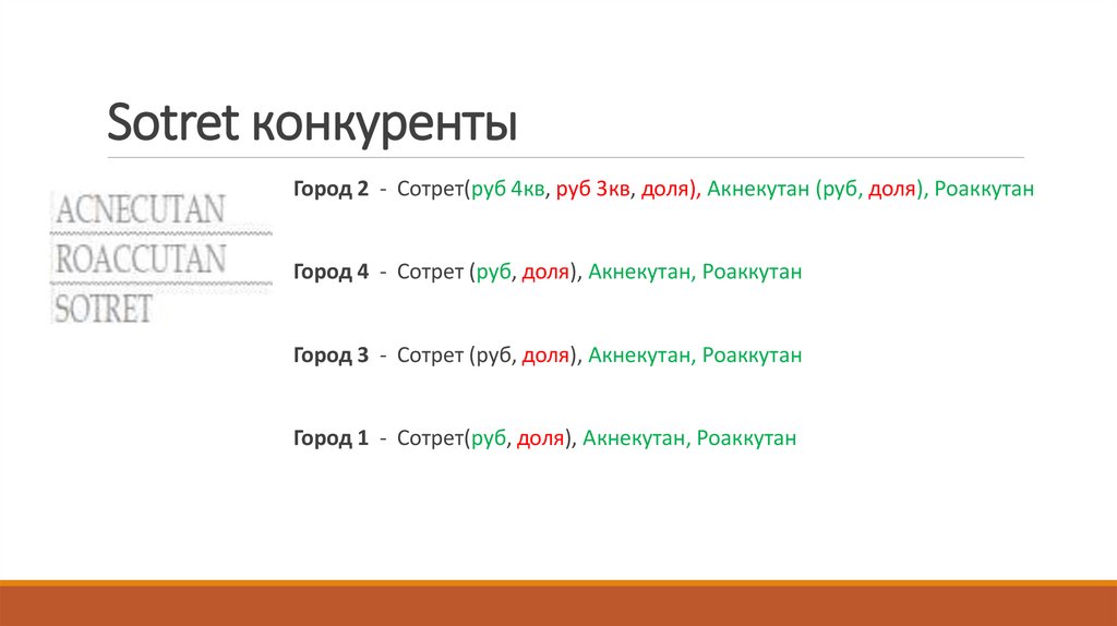 Низкие цифры в городе 2. Основные конкуренты Акнекутан, Роаккутан.