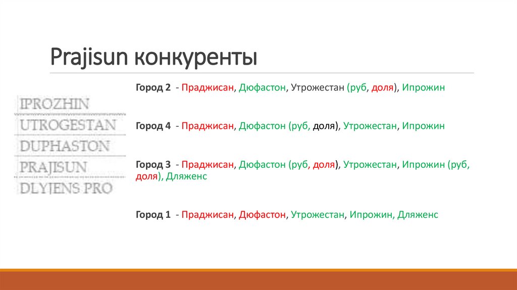 Город 2 - Праджисан, Дюфастон, Утрожестан (руб, доля), ИпрожинГород 4 - Праджисан, Дюфастон (руб, доля), Утрожестан, Ипрожин