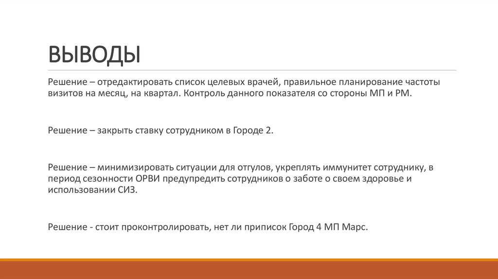 Решение – отредактировать список целевых врачей, правильное планирование частоты визитов на месяц, на квартал.