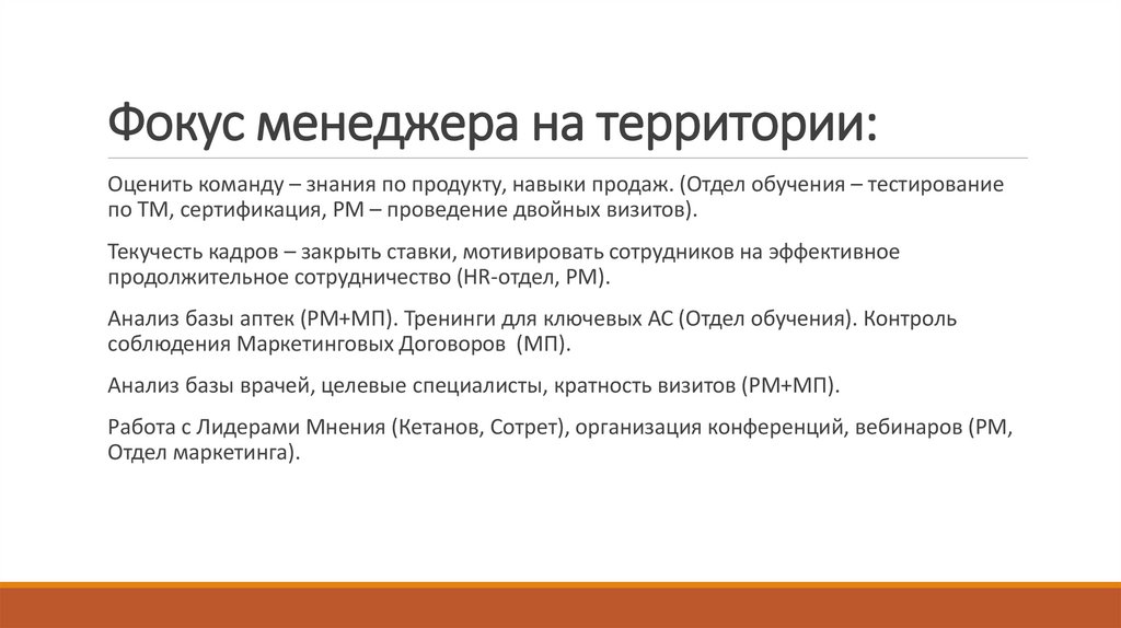 22. Фокус менеджера на территории: