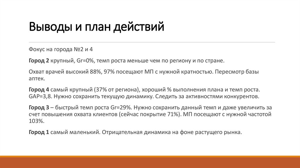 Город 1 самый маленький. Отрицательная динамика на фоне растущего рынка. Нужно