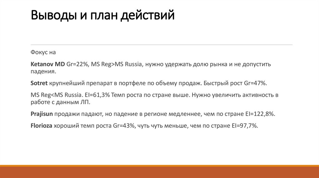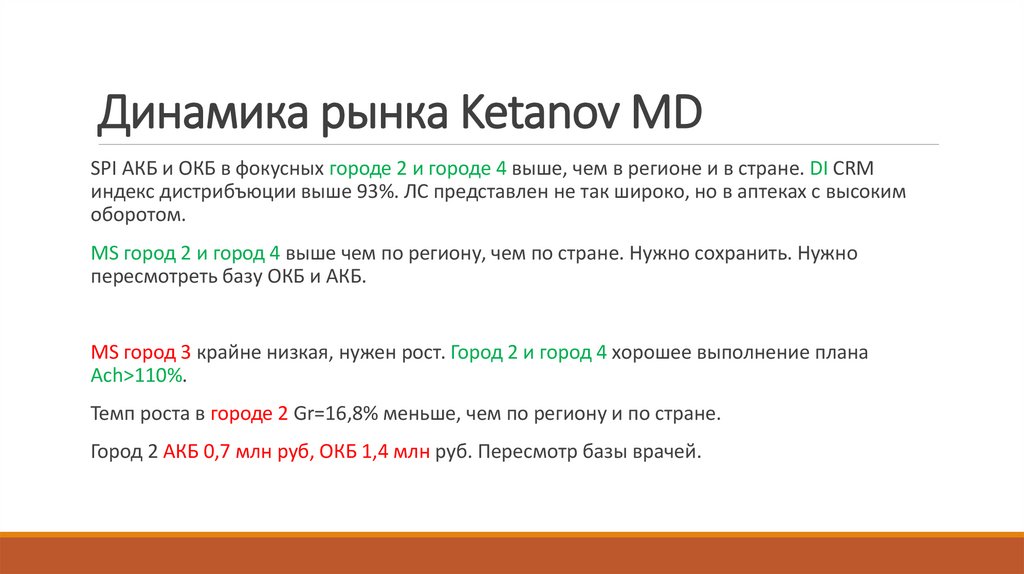 Фокус наKetanov MD Gr=22%, MS Reg>MS Russia, нужно удержать долю рынка и не допустить