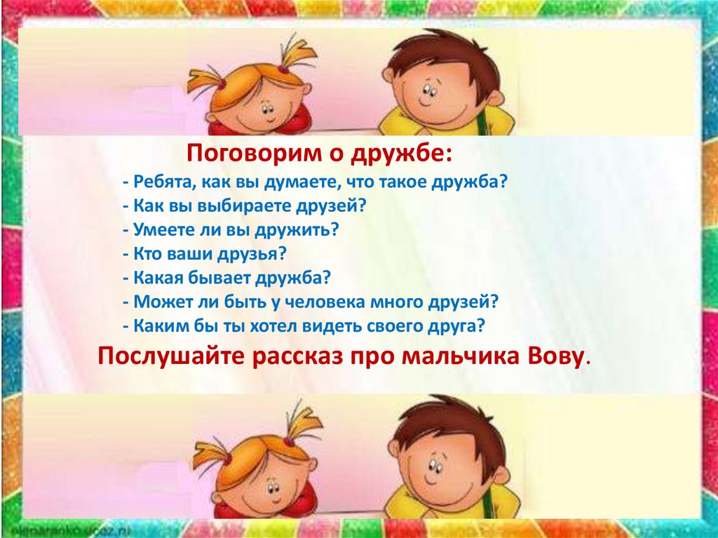 Поговорим о дружбе:- Ребята, как вы думаете, что такое дружба?