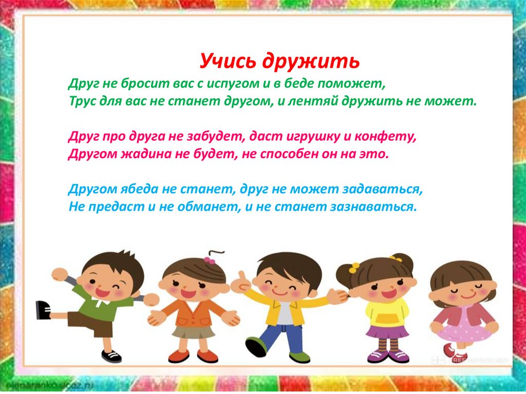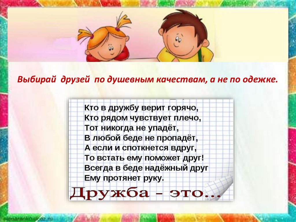 Учись дружитьДруг не бросит вас с испугом и в беде поможет,