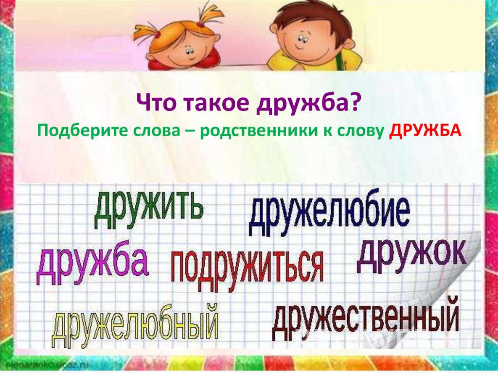 Что такое дружба?Подберите слова – родственники к слову ДРУЖБА