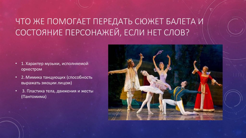 ЧТО ЖЕ ПОМОГАЕТ ПЕРЕДАТЬ СЮЖЕТ БАЛЕТА ИСОСТОЯНИЕ ПЕРСОНАЖЕЙ, ЕСЛИ НЕТ СЛОВ?