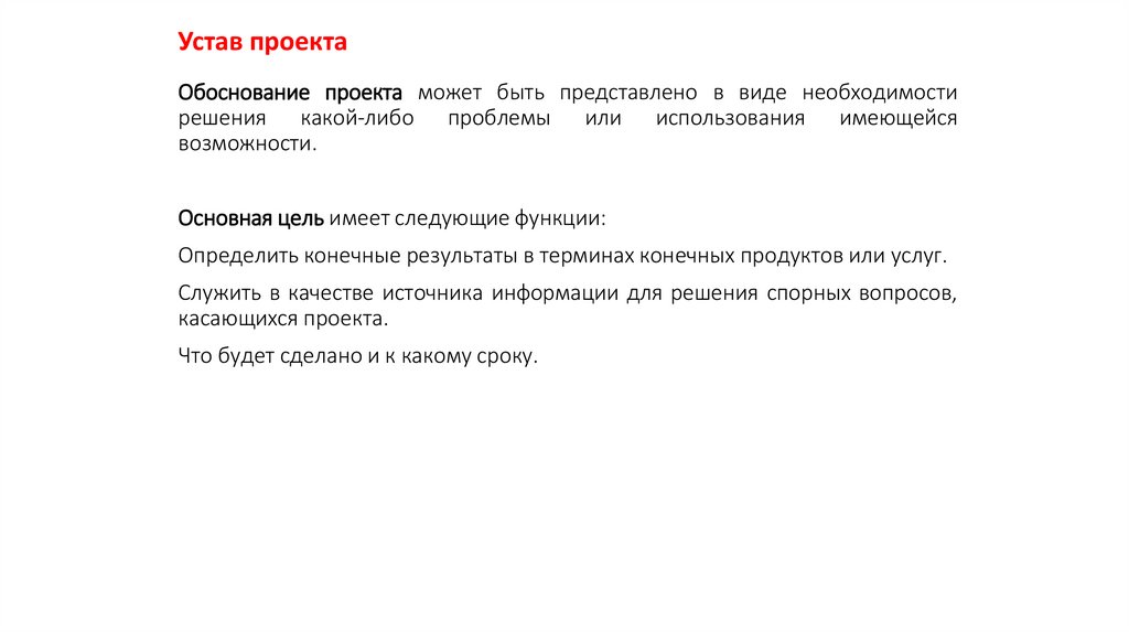Устав проектаОбоснование проекта может быть представлено в виде необходимости