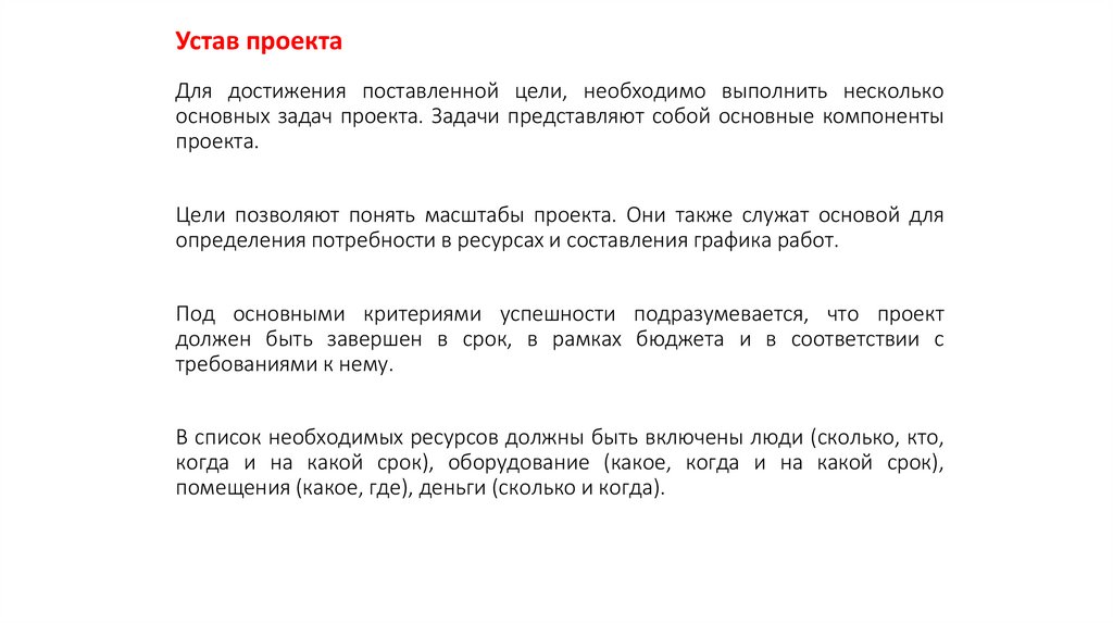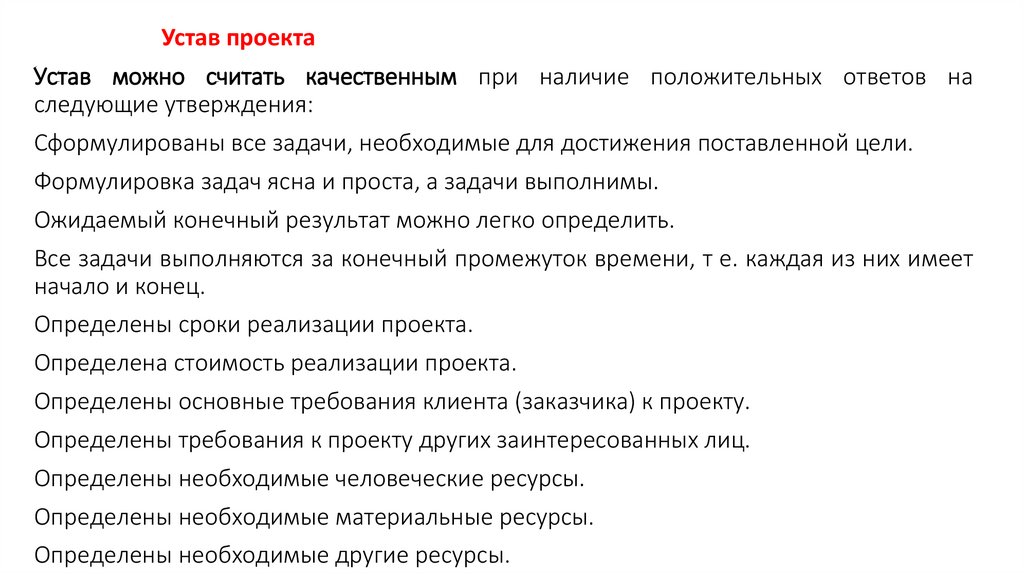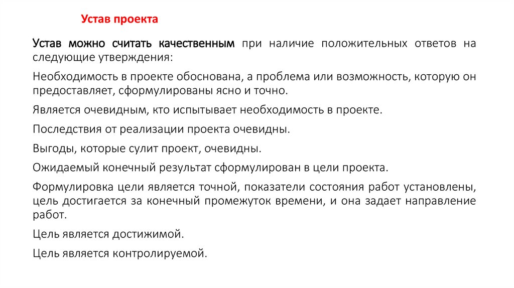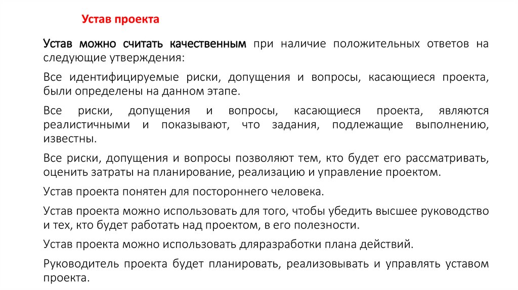 уставе каждого проекта. К ним можно отнести: