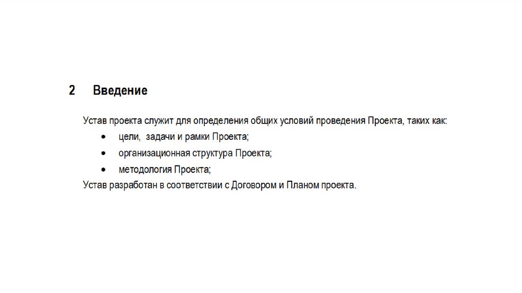 Устав проектаСодержание устава проекта