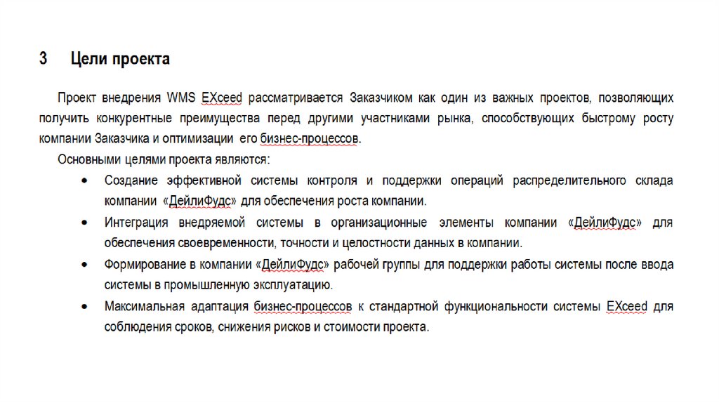 oПоддержка Проекта со стороны Высшего руководства ООО «ДейлиФудс»;