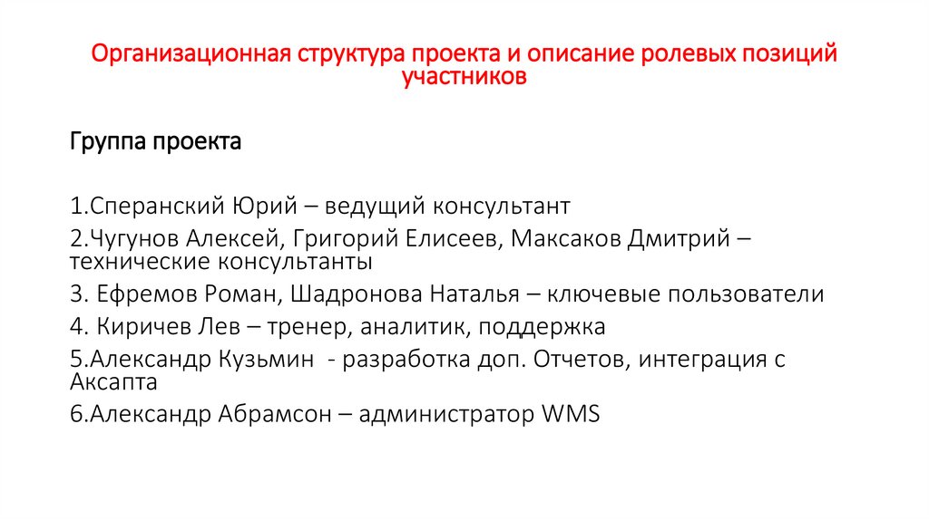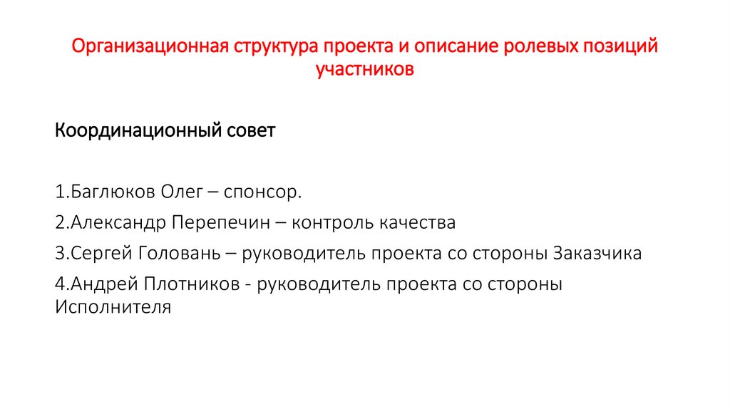 проекта и описание ролевых позиций участников