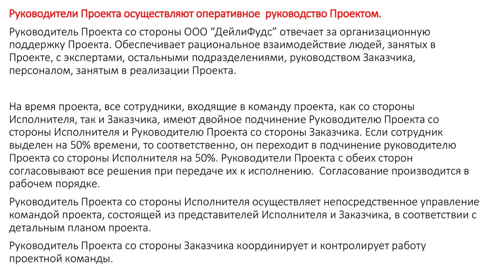 oИнтеграция и эффективное использование ресурсов Исполнителя и ООО «ДейлиФудс»;