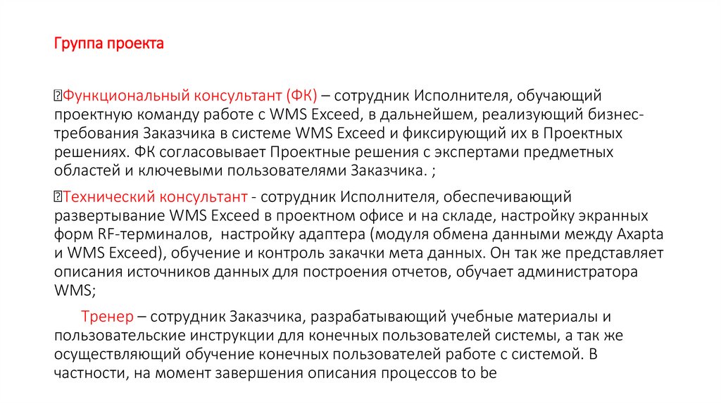 Интегратор – сотрудник Заказчика, отвечающий за интеграцию Axapta с WMS Exceed со